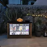 Die Villa bietet einen Essbereich im Freien mit Ausstattung zur Kaffee- & Teezubereitung. Es gibt auch einen Wasserkocher, einen Kühlschrank und einen Herd in der Küche.